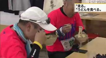 参加した人たちは、高松市内の60キロ余りのコースを走りながら途中で合わせて6軒のうどん店に立ち寄って制限時間の10時間以内、夜6時までの完走を目指します。