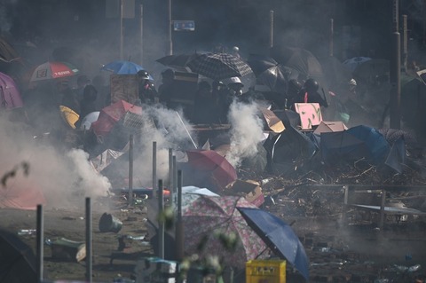生々しい映像には、デモ隊と警察の激しく衝突する香港理工大学(Hong Kong Polytechnic University)の現場で、