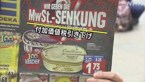 ドイツでは、景気対策として、日本の消費税にあたる「付加価値税」の税率の引き下げが始まりました。税金の負担を減らし、消費を後押しすることで、経済の回復につながるか注目されています。ドイツでは1日から、半年間の限定措置として、日本の消費税にあたる「付加価値税」の税率が19%から16%に引き下げられたほか、食料品などに適用されている軽減税率も7%から5%に引き下げられました。