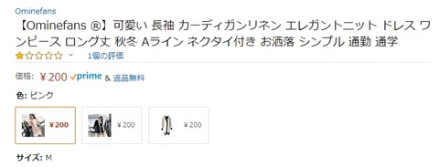 Amazonにて「Ominefans ®」の長袖カーディガンが200円(値段間違い?)です。