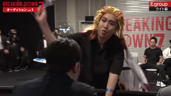 「底辺乞食系YouTuber」と紹介され、入場時には「俺がBreakingDown7の主役になる。俺は前回のオーディションで、逮捕されて参加できなかったんだよ」などと絶叫していた。