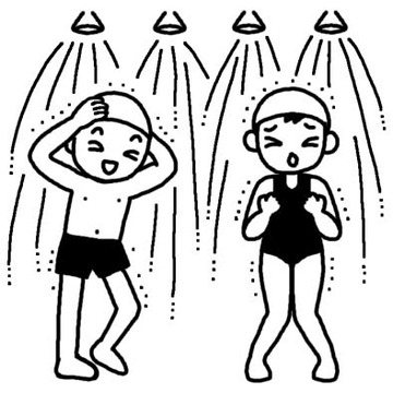 プールに入る順番待ちで、プールサイドに座っている間に