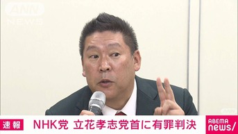 離党した東京都中央区議を脅したり、営業秘密を不正取得してNHKの業務を妨害したりしたとして、脅迫や不正競争防止法違反などの罪に問われた「NHKと裁判してる党弁護士法72条違反で」(旧NHKから国民を守る党)党首、立花孝志被告(54)の判決が20日、東京地裁であった。