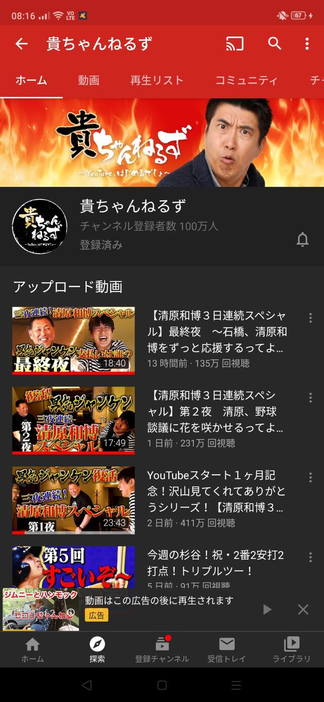 石橋貴明 YouTubeチャンネル登録者数100万人突破 清原氏との“男気ジャンケン”も話題に