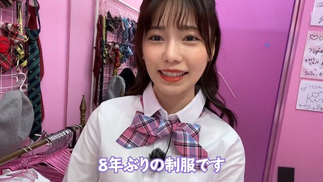 これは島崎が自身のYouTubeチャンネルで13日に公開した「【休日vlog】久しぶりの原宿でお散歩 一人でプリクラも撮った!」という動画で、原宿にある韓国の制服レンタルショップを訪れて制服を試着した際のショットである。