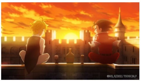 NFTの内容は「劇場版 七つの大罪 光に呪われし者たち」から、主人公メリオダスと弟ゼルドリスが太陽の下で酒を酌み交わす場面(画像下)をデジタル化したもの。価格は0.002ETHで、72時間限定(28日14時迄)の数量無制限で販売される。