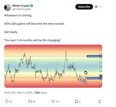 一方で、今回の上昇局面は過去のサイクルとは異なるとの警告も出ている。アナリストの2Lambroz氏はアルトシーズン入りを認めつつも、「市場のダイナミクスは変化した」と述べる。