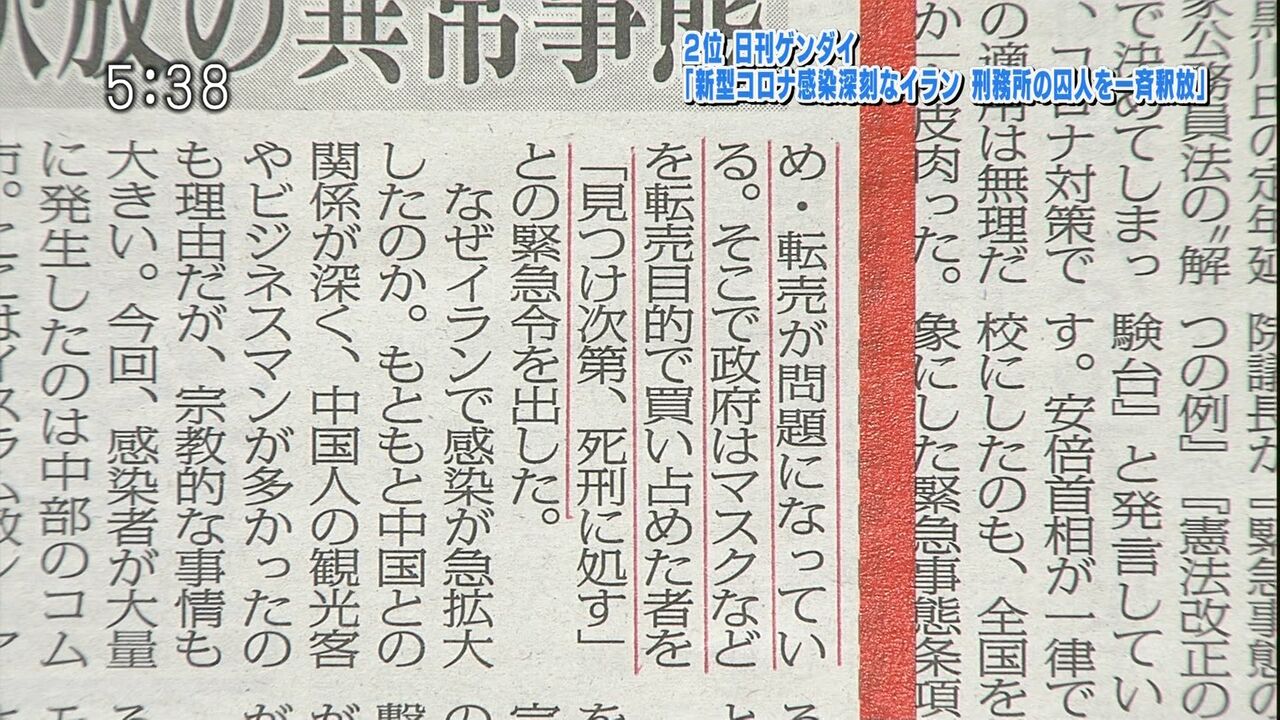 Homepageマネー総合 masakatsu7733 6年 ago Categories: マネー総合 イランのマスク転売対策が凄いwwwww 1: 稼げる名無しさん 2020/03/05(木) 22:03:09.94 ID:tyIVb8KI9.net イラン「マスク転売は見つけ次第死刑にする」 1001: 以下名無しさんに代わりまして管理人がお伝えします 1848/01/24(?)00:00:00 ID:money_soku 続きを読む Source: 稼げるまとめ速報 【コロナ】 山口県の40代男性、大分で女性従業員感染の「ラウンジ・サザンクロス」利用 妻と子ども感染 » « “人工の肺”装着でコロナ重症患者が回復へ masakatsu7733: Related Post PR広告:あなたもお釣り投資を始めませんか? ■ 利用開始3か月間は月額利用…