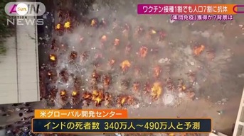 (インド政府 専門家会議のメンバー アミット・ダット医師)「インドではこれまでに40万人が亡くなったと報告されています。しかし実際の死者数は不明です。もっと死者は出ていたでしょう。報告よりもずっと多かった可能性が高い。」実際、アメリカの研究機関は、インドのコロナウイルスによる死者は公式発表のおよそ10倍にあたる340万人から490万人に及ぶ可能性が高いと発表しています。