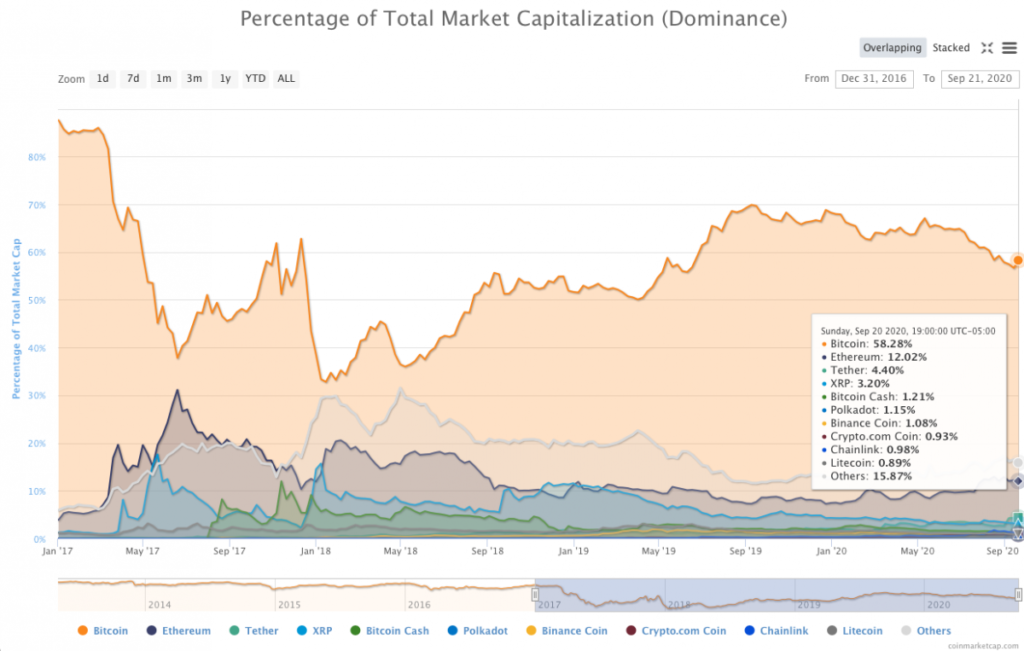 ビットコインのドミナンスは低下
