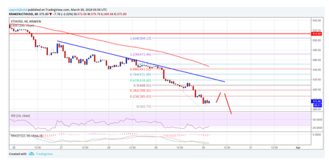 エテリアムの価格は、米ドルとBitcoinに対して大幅に下落した。ETH / USDは現在400.00ドル水準をはるかに下回っており、さらに損失が発生するリスクがあります。