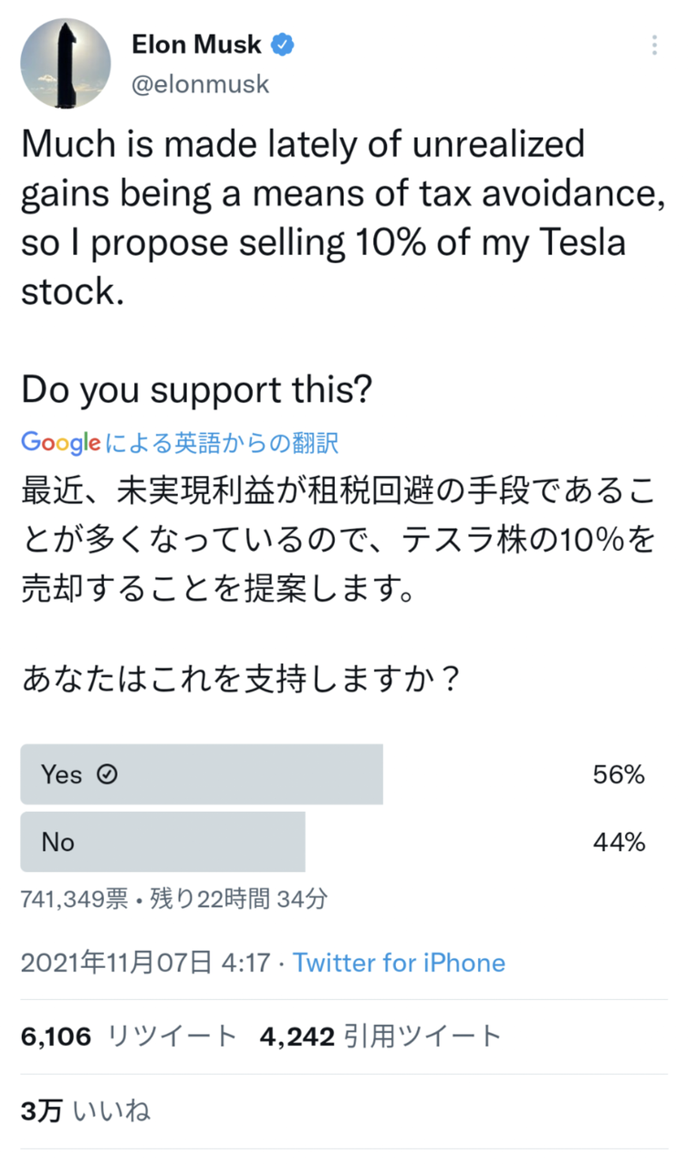 Much is made lately of unrealized gains being a means of tax avoidance, so I propose selling 10% of my Tesla stock.