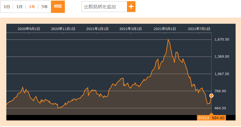 ただ5年チャートで見ると上昇前の高い位置あたりには踏みとどまっているかお。