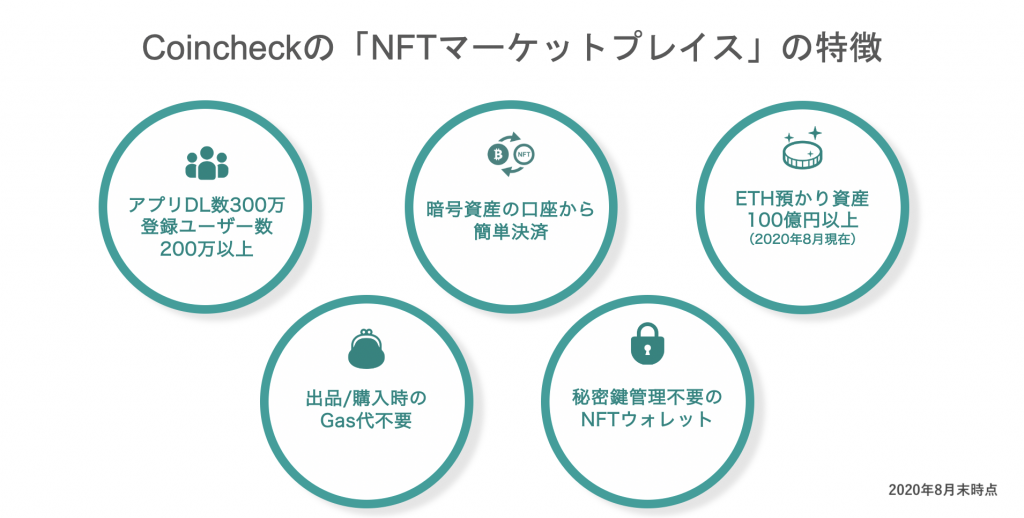コインチェックでは、2020年8月よりNFTマーケットプレイス事業の検討を開始し、2020年度内のサービス提供開始を目指し、NFTマーケットプレイスへの参加企業を募集している。