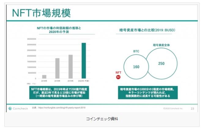 10日に開催されたコインチェック事業説明会にて、コインチェックの天羽執行役員は、NFTマーケットについて次のように期待感を示した。