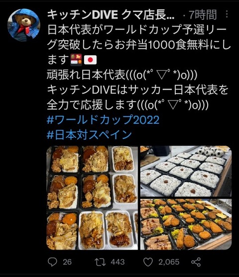 試合は12月2日朝4時からなので、勝利した場合同日は弁当が無料になるかもしれない。