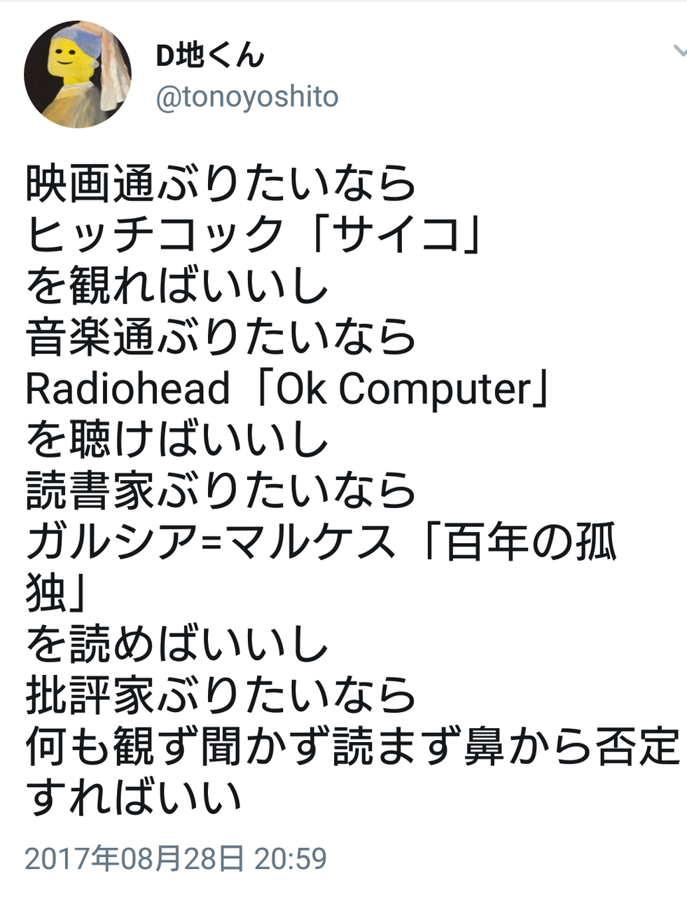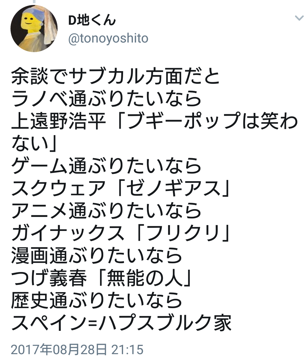 サブカル大学生さん「これ知ってると通ぶれるリスト作った」