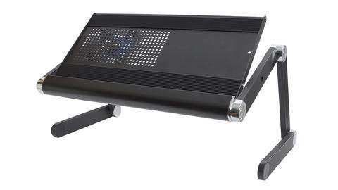 同社ヒット製品のゴロ寝デスクの復刻版。360度回る関節を3つの備え、さまざまな角度/高さに調整できる。PCの熱を逃がすファン(USB電源で動作)や、マウス用のサイドテーブルも搭載。