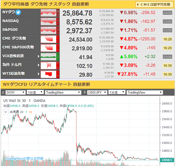 ダウ先動かず サーキットブレーカー発動かとの噂飛び交う