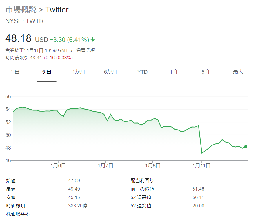 【��】トランプ禁止後、Twitterの株価が急落