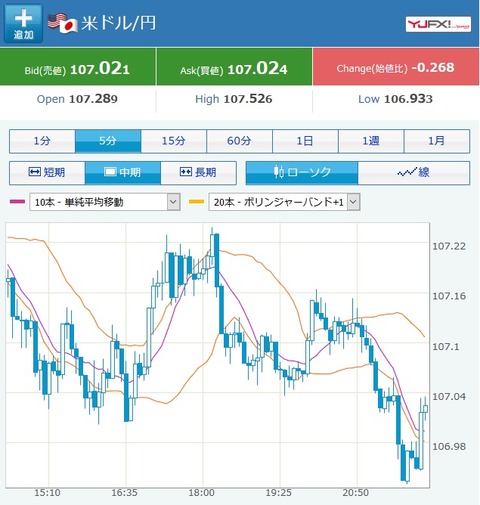 昨日の上げ分はほぼ戻して現在は107円ギリギリって感じだお。