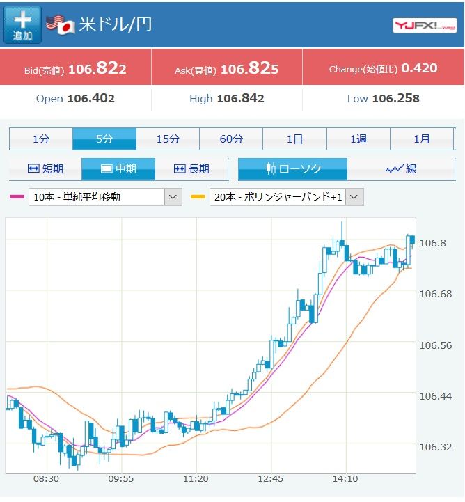 ここらで僕は一旦利確、15日付106.95円のオプションを意識してどちらに動くかを判断していこうと思うお。