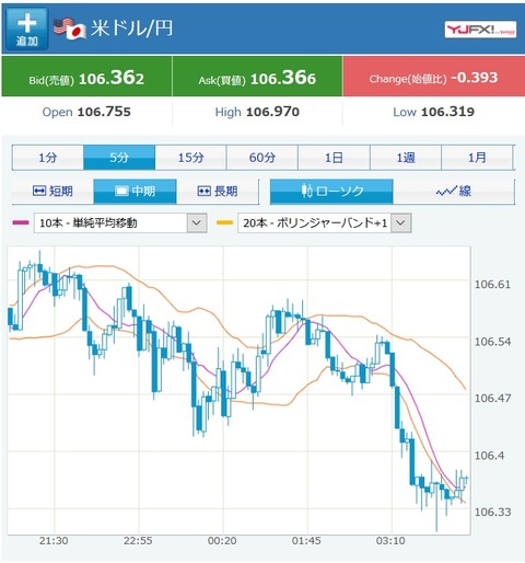 ここから戻すのか、それとも106円を割って下げるのか、非常に気になるところだお。