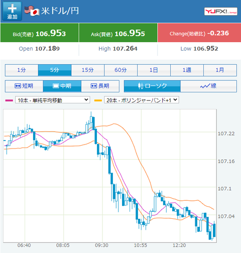おっ、ずっと107円台前半でうろうろしていたけれど、ようやくドル円が106円台に突入したお!