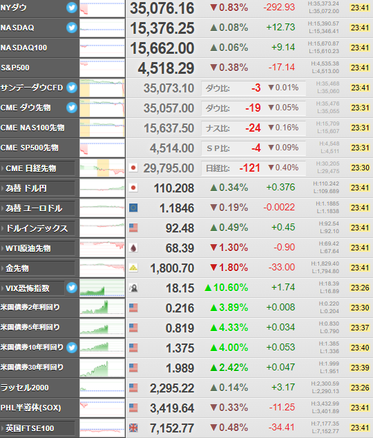 ダウも先週の雇用統計の弱さを引っ張っていてこちらもいい感じだお。