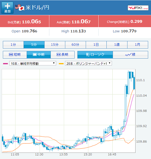ダウ先が伸びた事もありドル円は110円台乗せ。