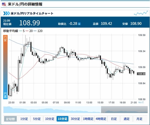 ただ109円を割ってからなかなか下げ渋ってる感じもするお・・・。