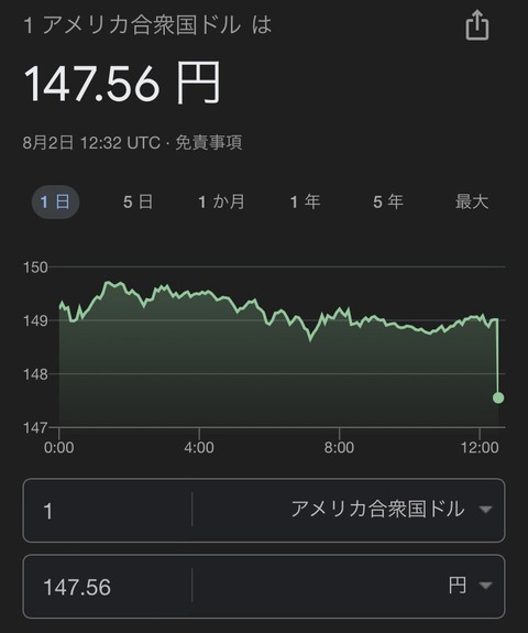 一瞬で1円近く下がってて草