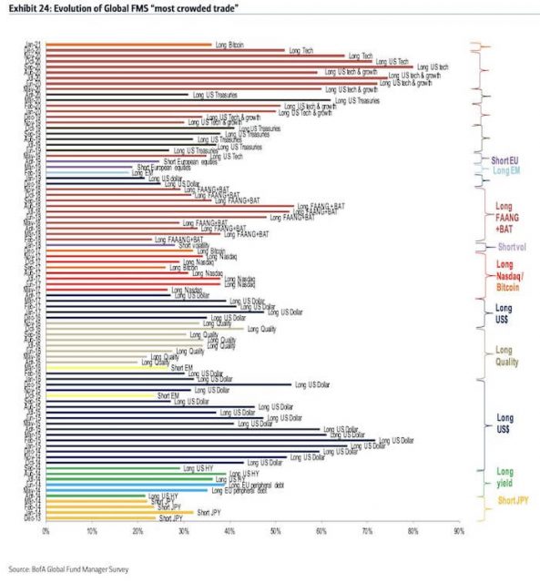 米大手銀「Bank of America」がファンドマネージャーを対象に毎月実施している調査の最新結果が21日に発表された。