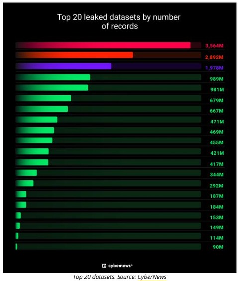 20日に公開されたレポートによると、サイバーニュースの調査チームは「数千万件から35億件超の記録を含む30の流出データセット」を調査。その合計は「驚異的な160億件のログイン資格情報」に達したという。