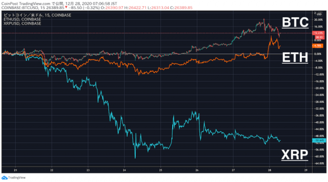 SECがXRPの有価証券問題を巡り、リップル社を提訴したことを受け、XRP市場が続落する中、米国規制下で強まる短期・中期的なアルトコイン市場の先行き不透明性を嫌気する動きが強まった。