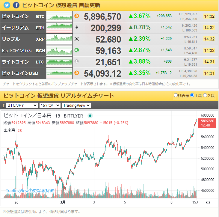 ビットコイン、再度590万円を突破