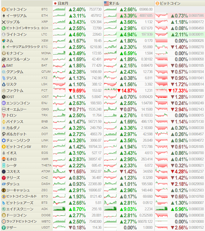 仮想通貨市場にどんどんお金が流れ込んでいるので、ビットコイン以外のコインも大きく上昇しているお。