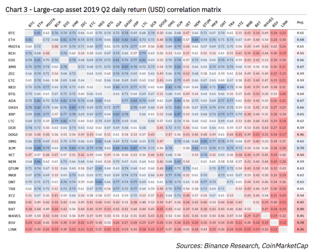 仮想通貨取引所バイナンスの市場分析部門が、2019年の第2四半期(Q2)における仮想通貨の相関性に関するレポートを発表した。