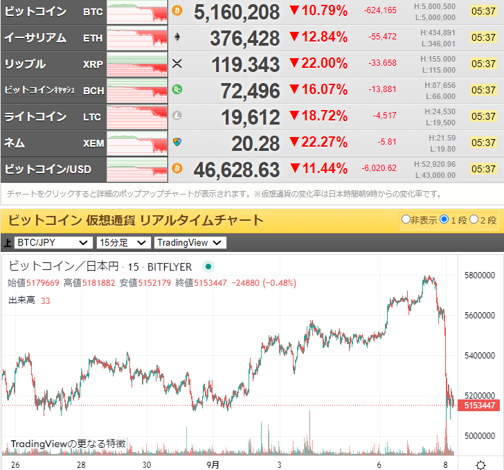 ビットコインは一時500万円台を割っていたけれど、現在は510万円台まで回復しているお。