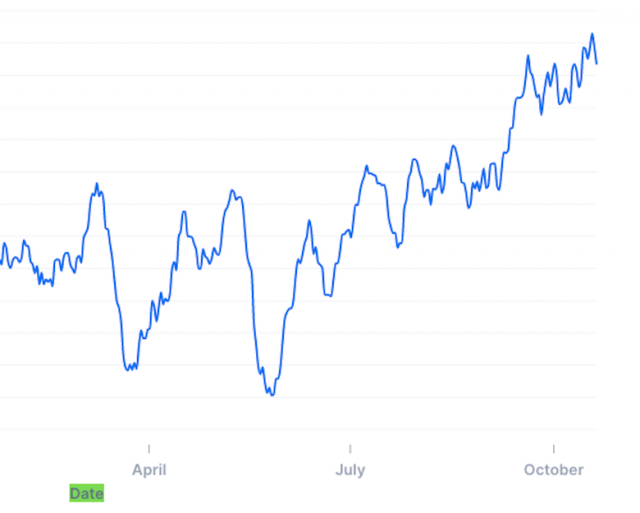 直近高騰するビットコインのハッシュレート(採掘速度)は、依然として高い数字を維持している。