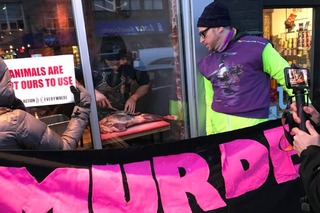 若者たちは平和的な抗議活動で「殺し屋」、「動物を殺してはならない」などと叫び、窓からレストランの中をのぞき込んだり、レストランに行かないよう客を説得しようとした。