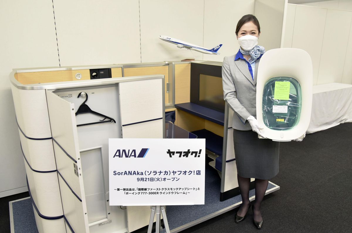 全日空商事(東京)が全日本空輸の国際線ファーストクラスの座席模型と機体に搭載していた窓枠をオークションサイト「ヤフオク!」に21日から出品する。座席模型は重さが約400キロになり、解体もできない。入札開始価格は座席模型が7730円、窓枠は773円にそれぞれ設定した。17日に東京都内で実物を報道陣に公開。担当者は「教育機関に売却することはあるが、基本的に活用方法がないので、出品の取り組み自体を楽しんでもらいたい」と話した。入札期間は26日まで。「販売用の商品として加工していない航空機部品がほしい」という航空ファンの声に応えた。座席模型は快適性の検証や販促イベントを目的に製造。航空機に搭載したことはないが、ほぼ同じ機能を持つという。窓枠はファーストクラスやビジネスクラスに使用していた。ている。