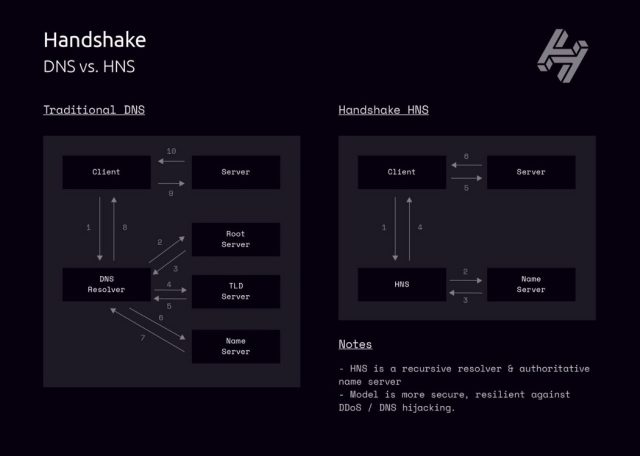 そこで新たなウェブブラウザのHandyBrowserは、DNSに代わるようなHNSという仕組みを開発した。