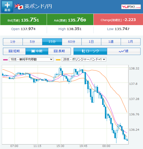 時々跳ね返されるのでヒヤヒヤするけれど、基本的には大きなダウントレンドだお。
