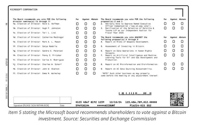 マイクロソフト社の株主が、バランスシートにビットコインを追加する可否について投票を行うことがわかった。米国証券規制当局への申請書で明らかになった。
