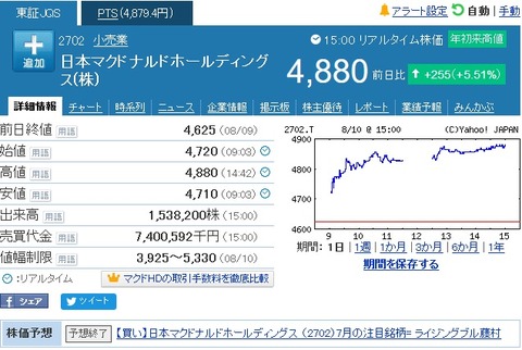 ・・・と思って株価を見てきたら、なんと4880円にもなってるお。。。