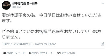 既に予約してしまった人に対しては「ご予約頂いていたお客様ご迷惑をおかけして申し訳ありません」とTwitterで謝罪している。