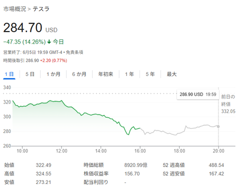 マスク氏には「本当に失望した」、トランプ氏主張-テスラ株価は急落