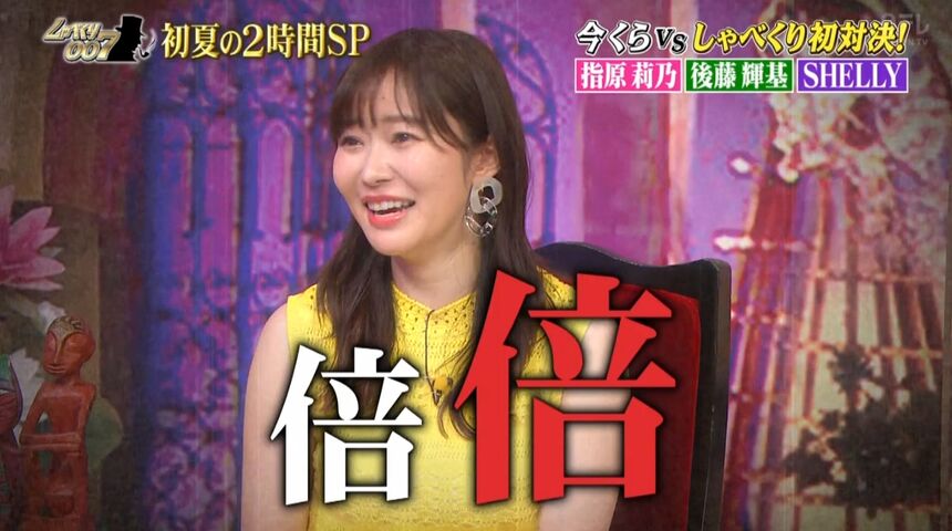 この日は番組横断のコラボが行われ、『今夜くらべてみました』(同系)のレギュラー陣3人が登場。指原はSHELLY、『フットボールアワー』後藤輝基と並び、『くりぃむしちゅー』ら「しゃべくり」メンバーとトークを繰り広げた。
