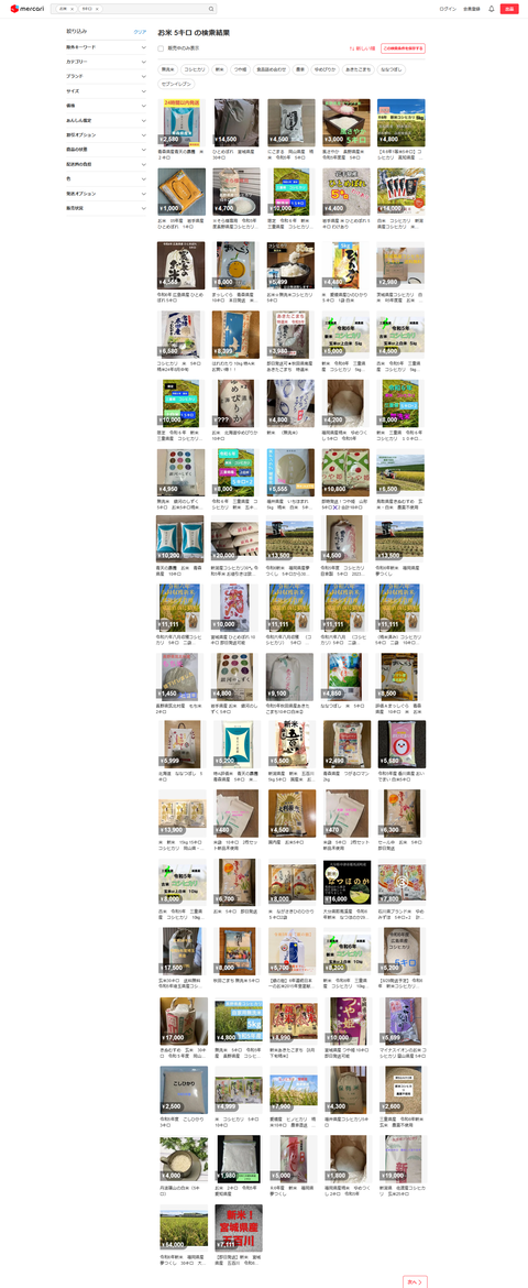 参考ソース:https://jp.mercari.com/search?keyword=%E3%81%8A%E7%B1%B3%205kg&order=desc&sort=created_time